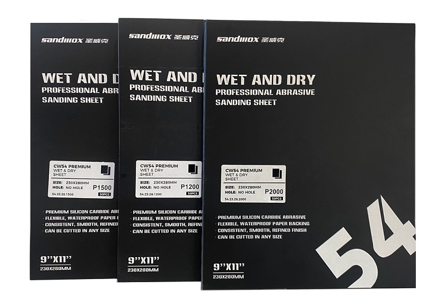 Silicon-Carbide abrasives are the sharpest and hardest abrasives manufactured. Due to the extreme sharpness this abrasive grain provides fast stock removal and a cool cut. Silicon-Carbide abrasives are ideal for steel, aluminum, clearcoat and body filler. Wet sanding facilitates surface lubrication and dust suppression. The other properties of the Sandwox wet/dry silicon cardide paper are: